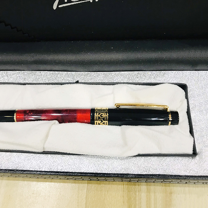 – Màu sắc: Thân màu đen vân ruby đỏ , cài bút màu vàng