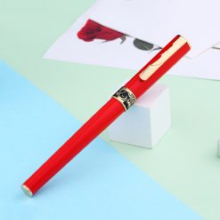 Cây bút được phủ lớp sơn bóng màu đỏ kết hợp những họa tiết mạ vàng càng làm tôn lên vẻ đẹp nổi bật của cây bút, đó là sự trẻ trung, sang trọng và quý tộc.