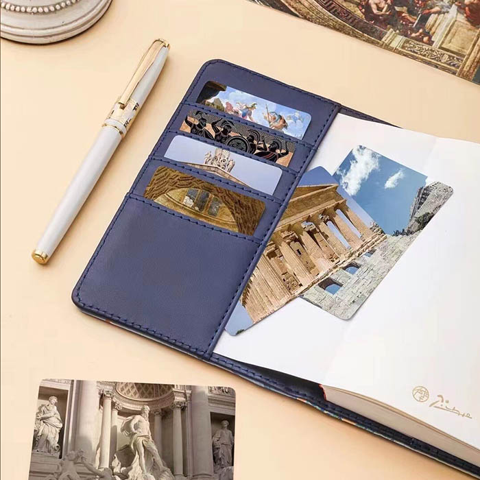 Kèm theo hộp quà tặng là cuốn sổ tay bìa da hoạ tiết Hy Lạp màu sắc tinh tế, dập chìm logo thương hiệu Picasso. Khác với những cuốn sổ thông thường, sổ da Picasso là dòng sổ viết cao cấp với giấy viết tờ dày, trắng ngà, không nhòe mực, bìa sổ làm bằng da mềm mịn đường chỉ may tỉ mỉ.