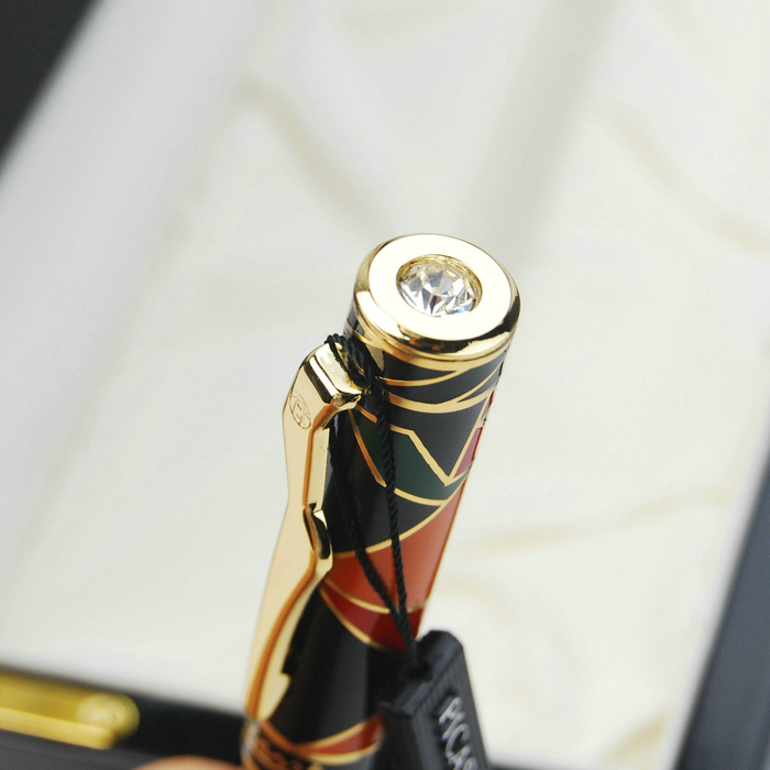 Chiếc bút thu hút ánh nhìn của mọi người ngay từ lần đầu tiên. Phần cài bút được thiết kế phá cách với những đường cong gợi cảm. Phần nắp bút là bức tranh về con người và bầu trời rộng lớn. Tất cả hòa quyện vào nhau mang đến những cảm xúc mãnh liệt, sang trọng, đầy màu sắc trong ánh sáng lấp lánh của viên đá quý gắn trên đỉnh nắp cùng ngòi bút bằng vàng 10K.