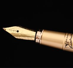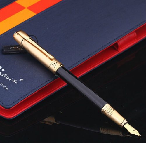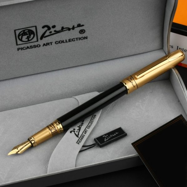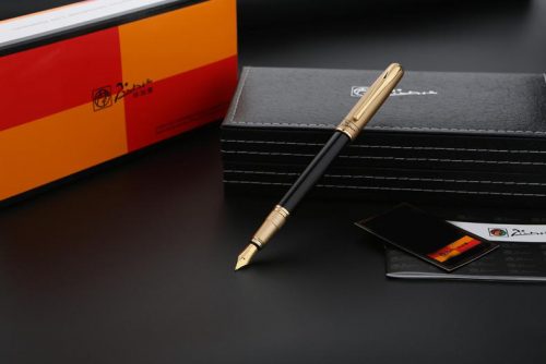 Bút cao cấp Picasso 906 thuộc dòng bút máy với thân bút màu đen, nắp bút màu vàng đồng tạo nên nét sang trọng cho cây bút.